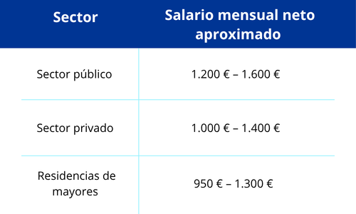 En España, se calcula que el salario mensual aproximado está entre los 950€ y los 1.600€/mes, aunque esto puede variar según el sector, la experiencia y los turnos realizados. A continuación, se muestra una aproximación: